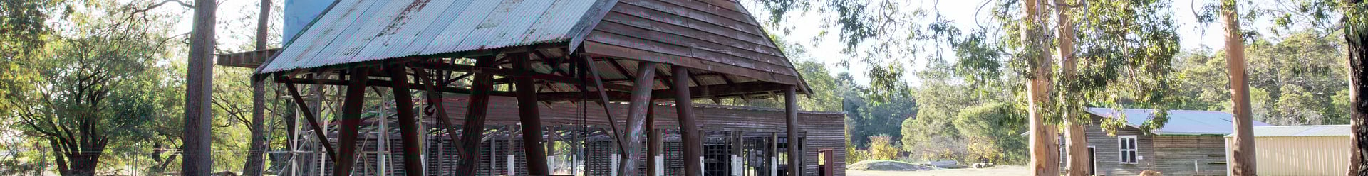 The three bay Gantry is an open sided structure with a corrugated iron roof. On the southern side of the structure a set of three, A-frame bush poles support the roof and two sets of hoist equipment. On the northern side the structure is supported by square sawn posts. The place has an earth floor.