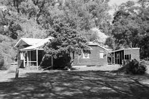 In plan the cottages include a living room (with open fire), two bedrooms, kitchen (with wood stove), and a bathroom off the rear verandah.