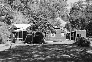 The area also includes several other minor buildings including a timber framed weatherboard clad hut with a corrugated iron gabled roof, aluminium framed windows, and two metal chimney flues (Building 261, undated). There is also a pump house (Building 1775, 1965) on the northern bank of the river above the bridge. A pipe from the pump house crosses the river just west of the bridge.