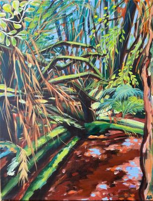 Artist: Annabelle BrockmanDescription: A painting inspired by a hike I did in Tasmania which included a magical "Forest Bathing" experienceMedium: Acrylic on canvasSize: 35 cm (W) x 45 cm (H)