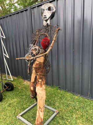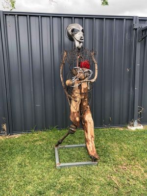 Description: Sarah evolved from some prunings that looked a bit like a pair of legs and a desire to fuse metal with timber. Sarah speaks to me of nurturing, regeneration, reproduction, spirituality, and the coexistence of all things.