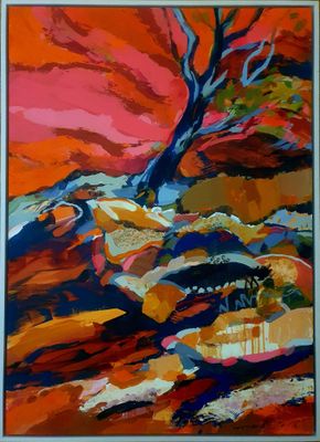 Description: When I explored the descent to the Z- Bend Kalbarri, I felt the presence of voices of the earth.I simply stood still, felt the conversation within the caves along the rock face. So I absorbed the shapes, line variations