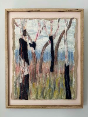 Description: Eucalyptus Miniata 50 x 62 Woollybutts are characterised by their contrasting bark, rough textured dark coloured giving way to a smooth pale finish. My vision here to create an impressionist soft background, dissolving into the sky to show off the archi
