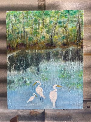 Artist: Eilis DoyleDescription: Land water bird scapeMedium: Oil on canvasSize: 36 cm (W) x 46 cm (H)