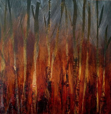 Artist: Lyn WardDescription: Trees hold memory of changeMedium: Acrylic and tree sap on boardSize: 30 cm (W) x 30 cm (H)