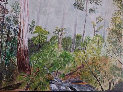 Artist: Linda HarrisDescription: Forest and streamMedium: Acrylic on canvasSize: 40 cm (W) x 30 cm (H)