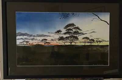 Description: Watercolour on half sheet rough 300gsm. Looking out from my campsite at dusk i watched in awe some of the most beautiful sunsets. Calming and beautiful, its power and beauty giving way to a cool clear night.