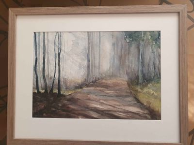 Artist: Karina WatsonDescription: Misty morning amongst the treesMedium: WatercolourSize: 54 cm (W) x 42 cm (H)