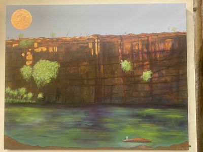 Artist: Anne-Marie D'ArcyDescription: Wunnumurra Gorge, KimberleyMedium: Rust and acrylic on canvasSize: 100 cm (W) x 80 cm (H)