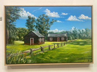Artist: Gordon BoettcherDescription: Wonnerup School and Teachers CottageMedium: Acrylic on canvasSize: 80 cm (W) x 54 cm (H)